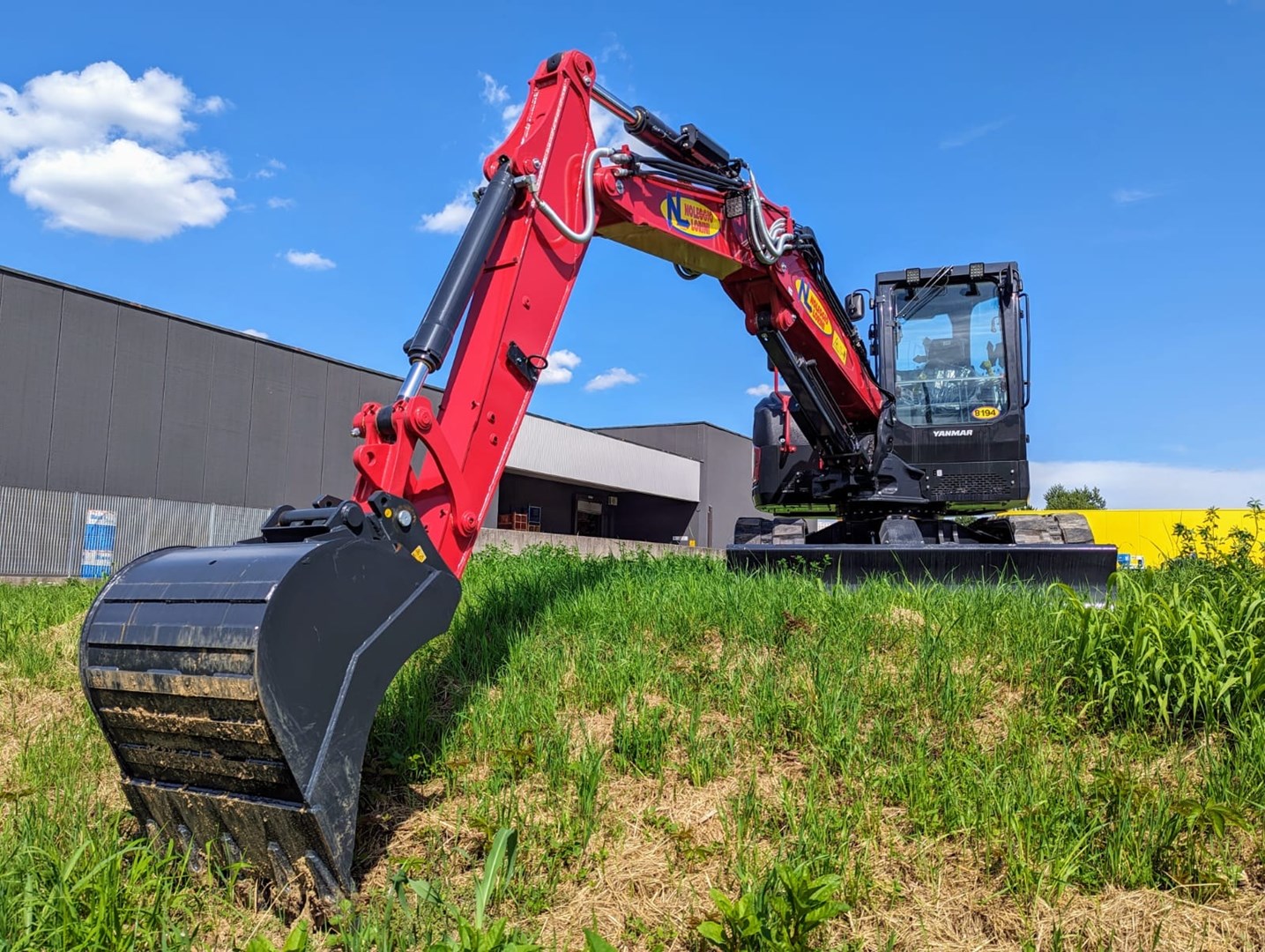 L'escavatore gommato Yanmar B95W della flotta Noleggio Lorini è un mezzo efficiente e dalla grande capacità di sollevamento.