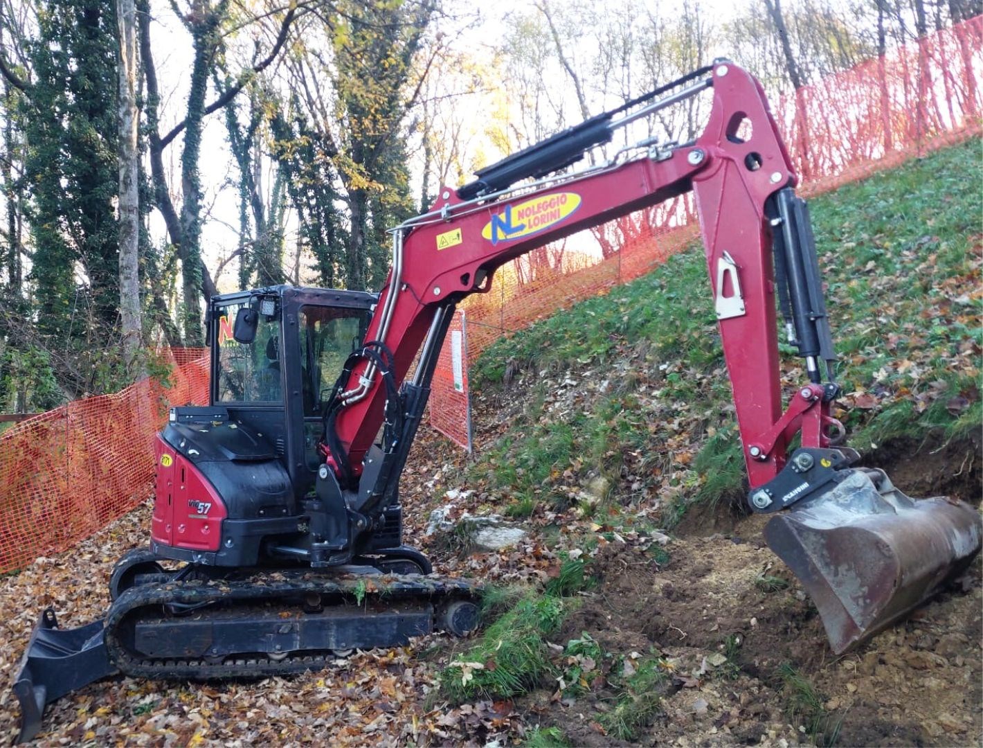 Il miniescavatore Yanmar Vio57 della flotta di Noleggio Lorini è una macchina molto versatile e funzionale per i piccoli lavori di movimento terra, dotato di una cabina molto spaziosa e con un ampia visibilità a 360°.