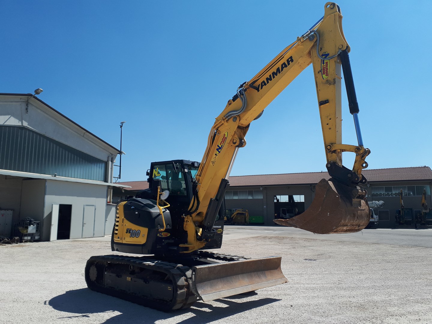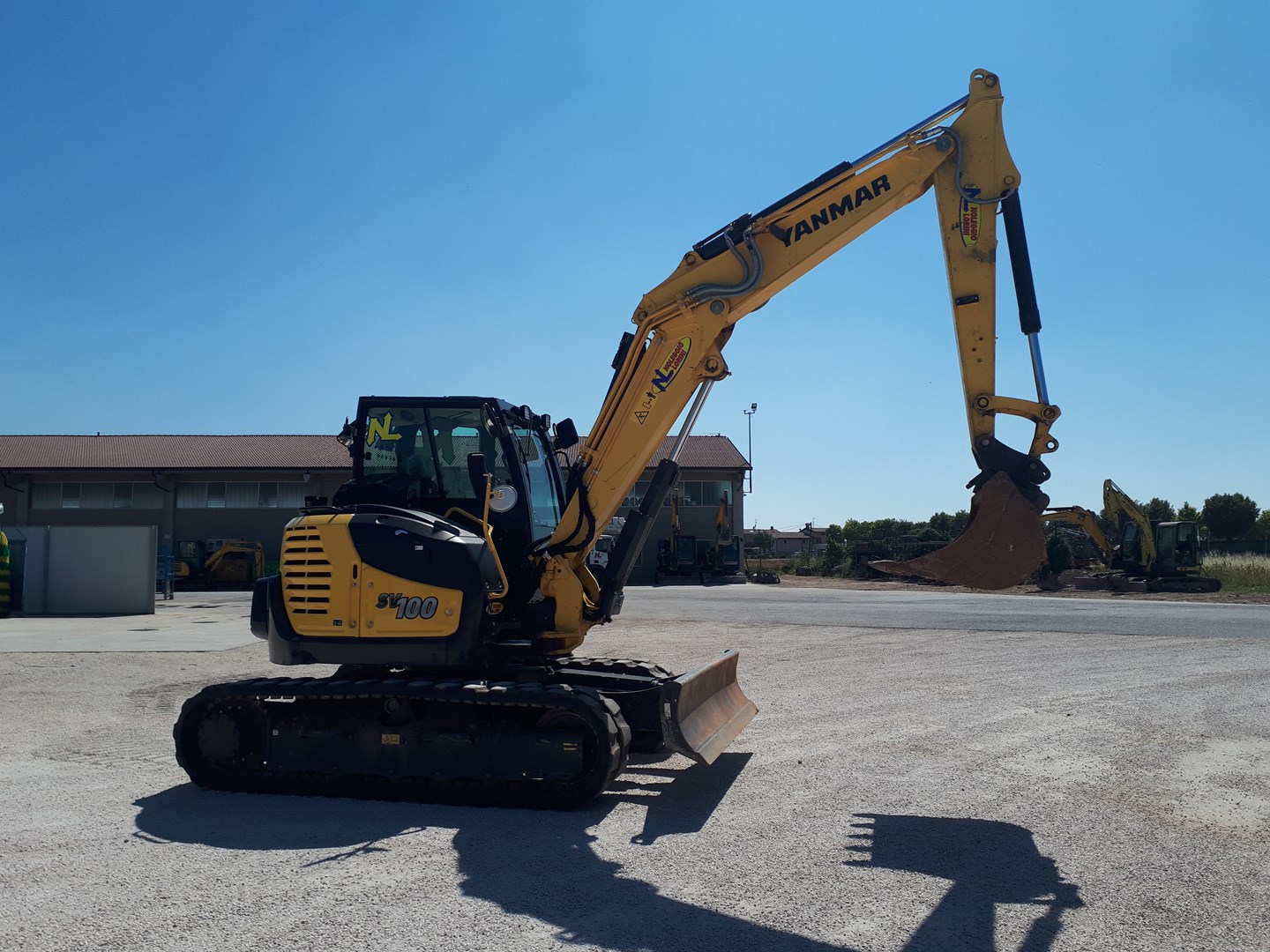 Il miniescavatore Yanmar SV100 è il top di gamma dei cingolati in gomma della flotta di Noleggio Lorini. Dotato di una cabina confortevole e spaziosa, permette di effettuare ottimi lavori di movimento terra.