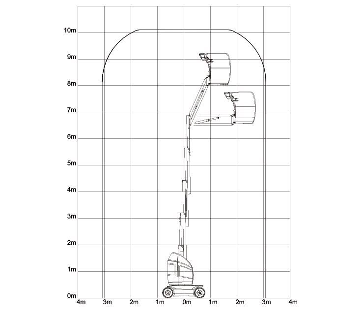 Questa piattaforma elettrica, chiamata Toucan 10E, della flotta NOLEGGIO LORINI è veloce, efficiente e facile da usare.