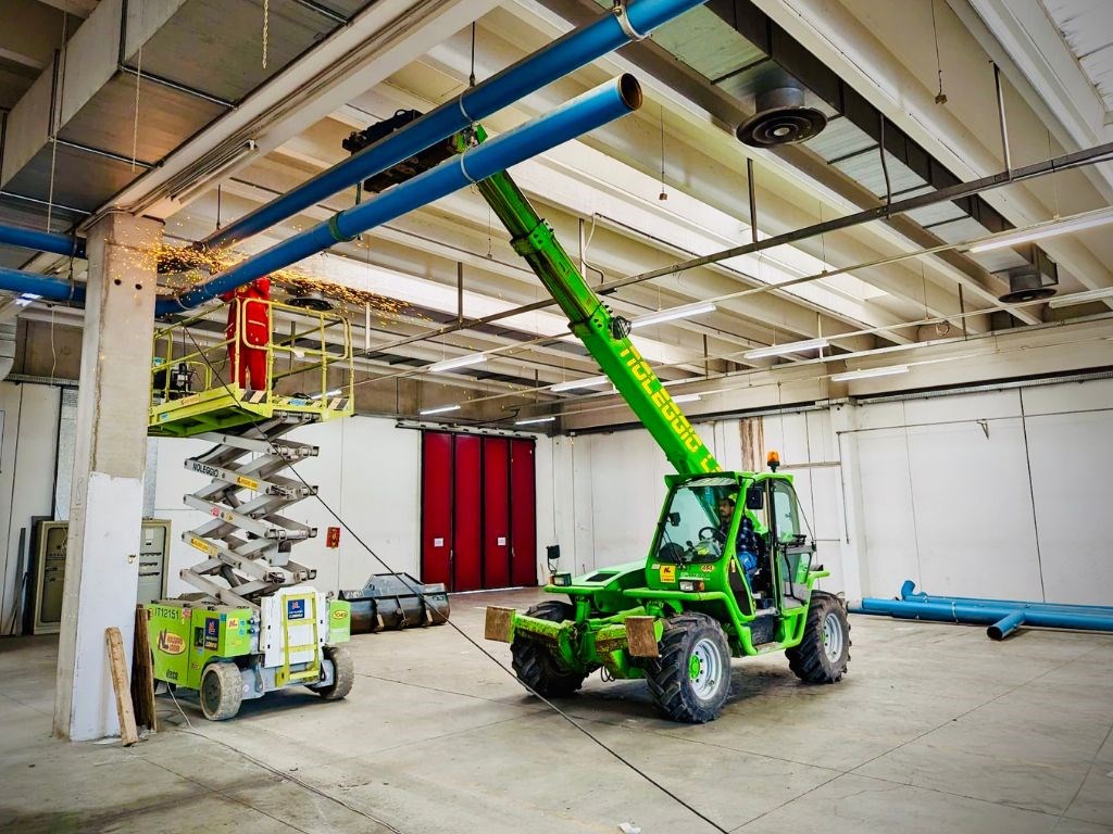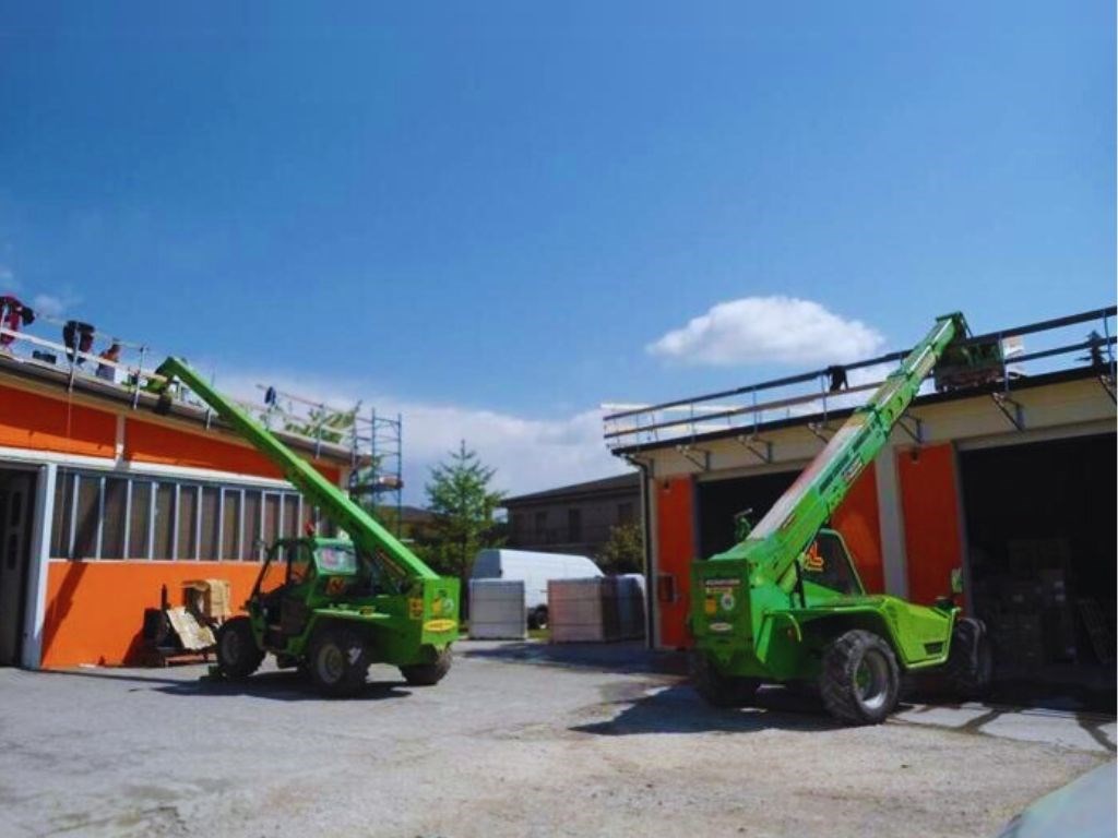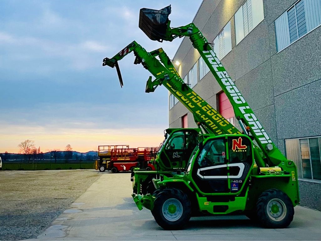 La flotta della NOLEGGIO LORINI presenta il sollevatore telescopico Merlo, il piu' classico e funzionale sollevatore con 35 q.li di portata e un'altezza di lavoro fino ai 13 metri.