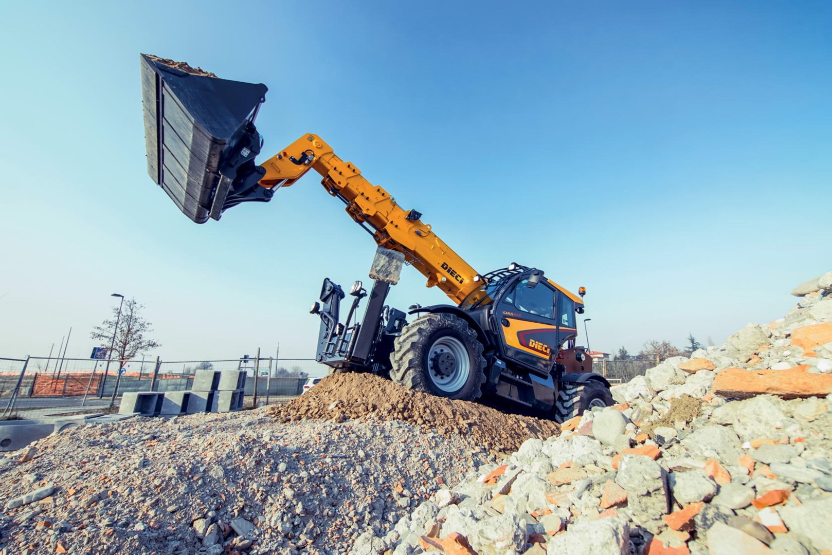 Icarus è un sollevatore telescopico fisso in grado di raggiungere grandi altezze, ma garantendo un'ottima portanza, grazie al braccio robusto e agli stabilizzatori indipendenti.