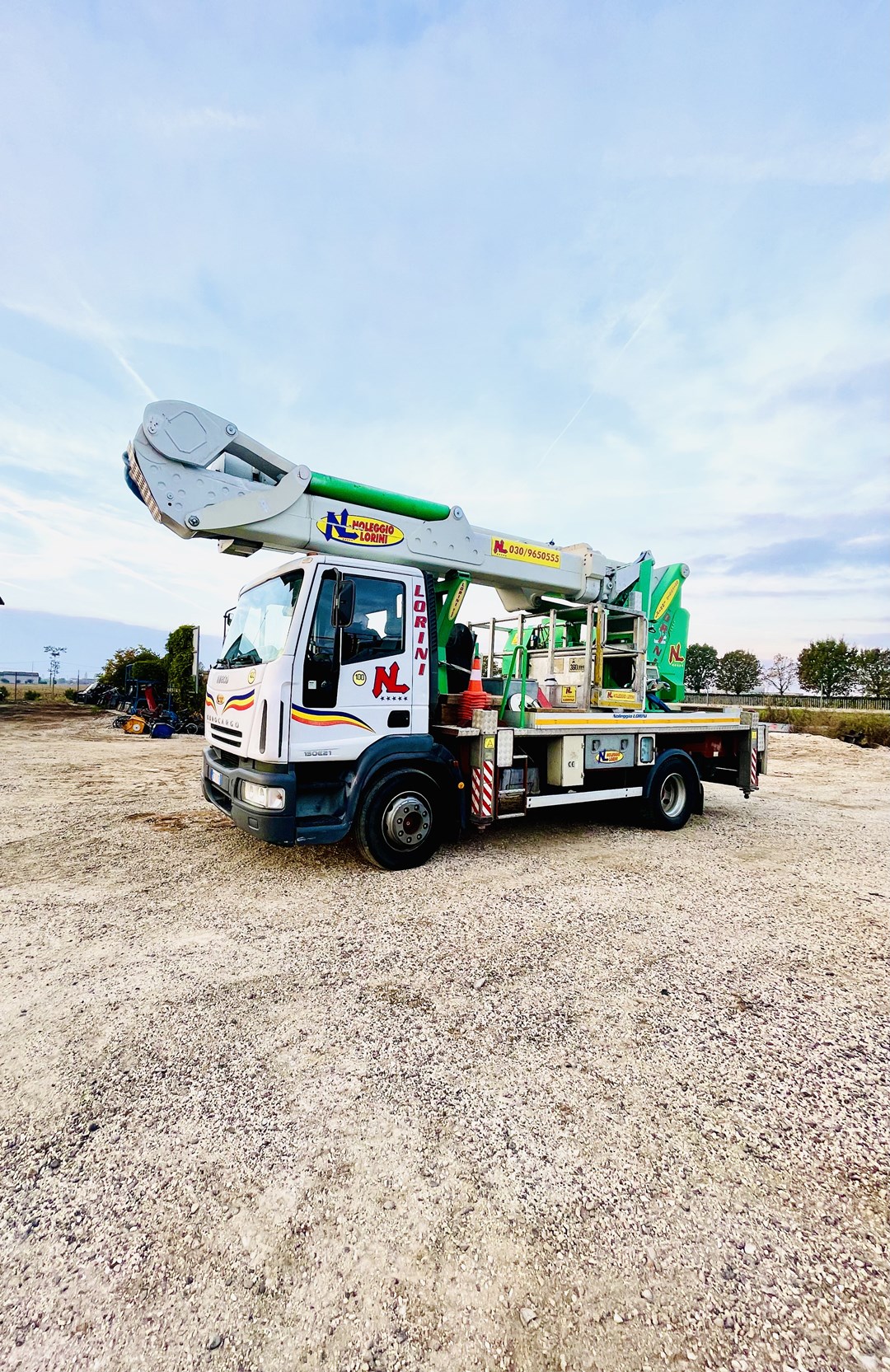 La piattaforma aerea autocarrata 32 mt disponibile nella flotta Noleggio Lorini è utilizzabile solo con operatore (noleggio a caldo) e raggiunge notevoli altezze e sbraccio.